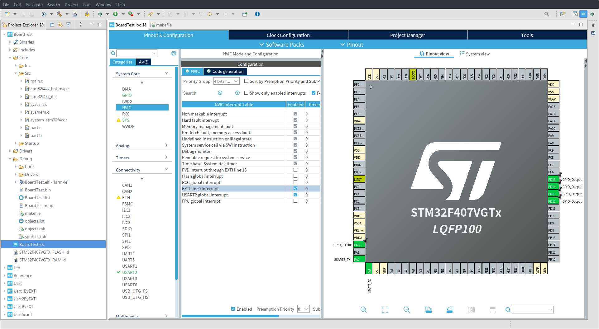사용자 입력을 받으려면 uart data를 인터럽트로 받는 것보다 폴링 방식으로 data를 수신하는 것이 편하지만, 이 코드에서는 인터럽트 방식을 사용하였다. 따라서 아래 이미지와 같이 MCU를 설정하도록 한다.