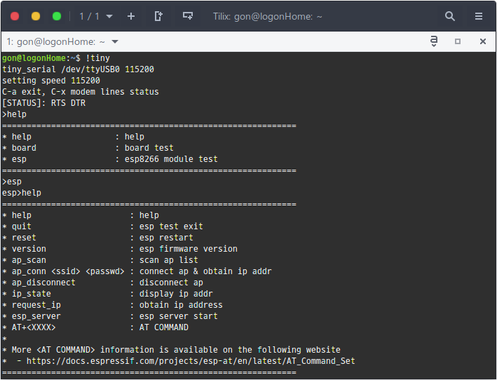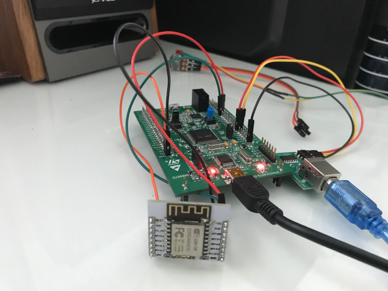 지인에게 얻은 ESP8266 모듈에는 마이컴이 내장되어 있고, 양산용 펌웨어가 아닌 디버그 펌웨어가 올라가 있어 UART 통신 과정에서 수많은 예외상황이 발생하여 삽질의 연속이었다. 디버그 메시지로 UART RX 인터럽트가 빈번하게 발생하여 오버헤드로 인한 UART 데이터가 유실되는 문제까지 생겨 좀 고생을 하였다.