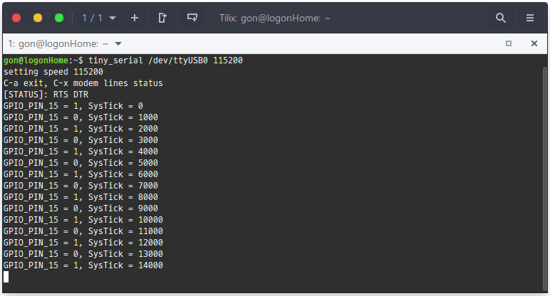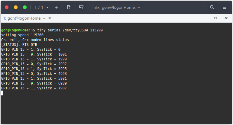 printf("GPIO_PIN_15 = %d, SysTick = %ld\r\n", HAL_GPIO_ReadPin(GPIOD, GPIO_PIN_15), HAL_GetTick());