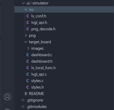 target_board는 LVGL 라이브러리를 사용하여 UI를 구성하는 작업 디렉토리이며, target_board 디렉토리의 소스 파일을 STM32 UI 작업 디렉토리에 복사하여도 문제없이 동작해야 한다. png 디렉토리는 png decode로 STM32에 포팅한 것을 Host PC에서 동일하게 사용하기 위해 추가한 것이다. UI이 구성과 별개인 관계로 target_board 디렉토리에는 포함시키지 않았다.
