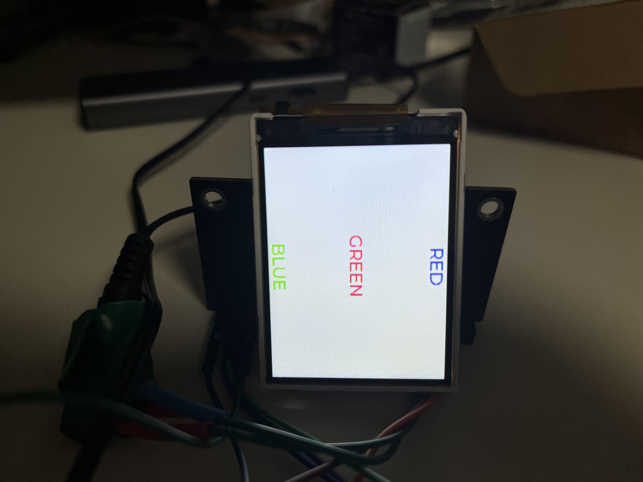 아래 코드는 3개의 라벨을 생성하여 간단히 RGB 컬러로 문자열을 출력한 것이다. 참고로 내가 갖고 있는 LCD 모듈은 Invert ON 시켜야 정상적인 색상이 출력된다.